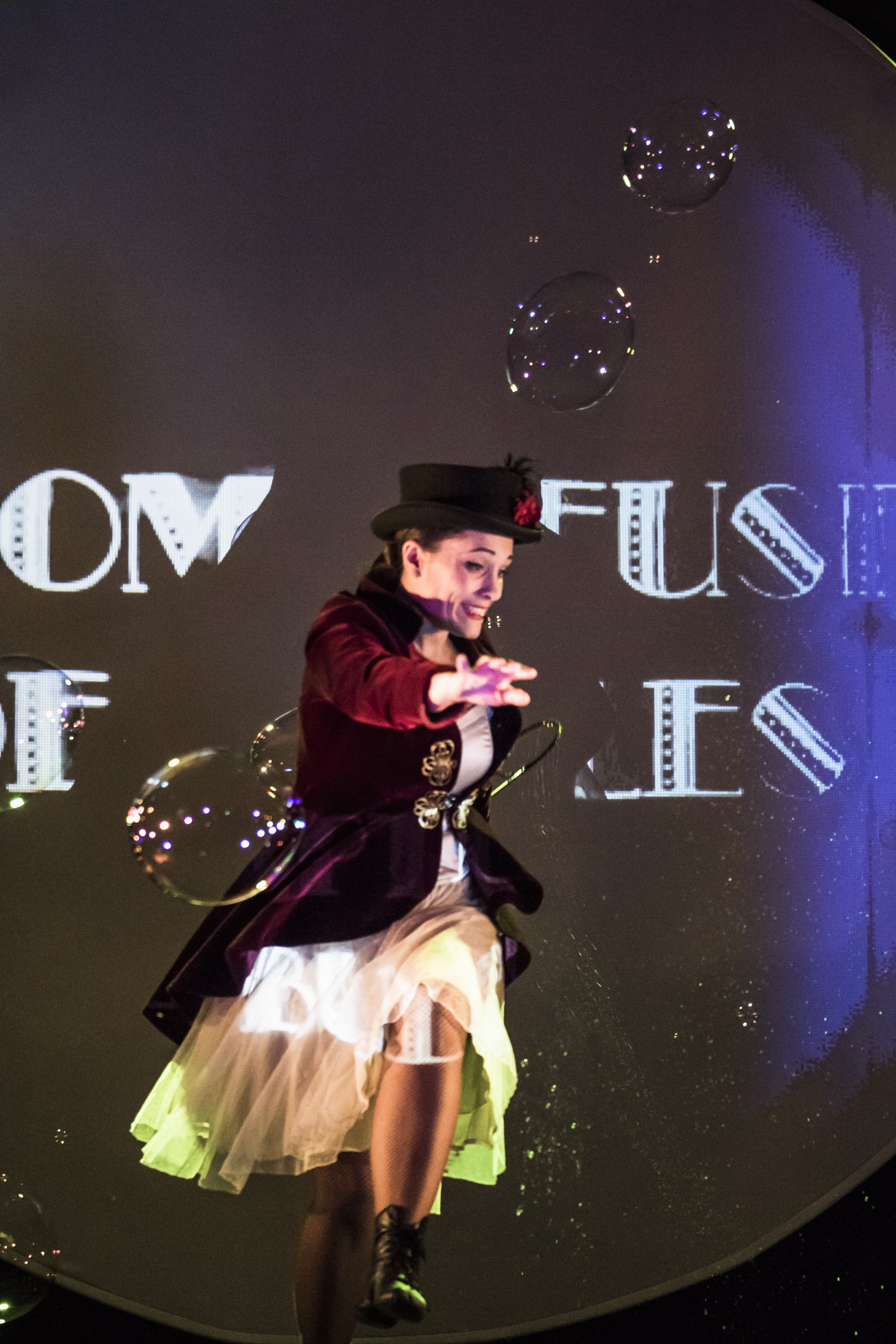 "La dompteuse de bulles" est un mélange bouillonnant de bulles de savon, de théâtre sans parole, de vidéo et de poésie légère.