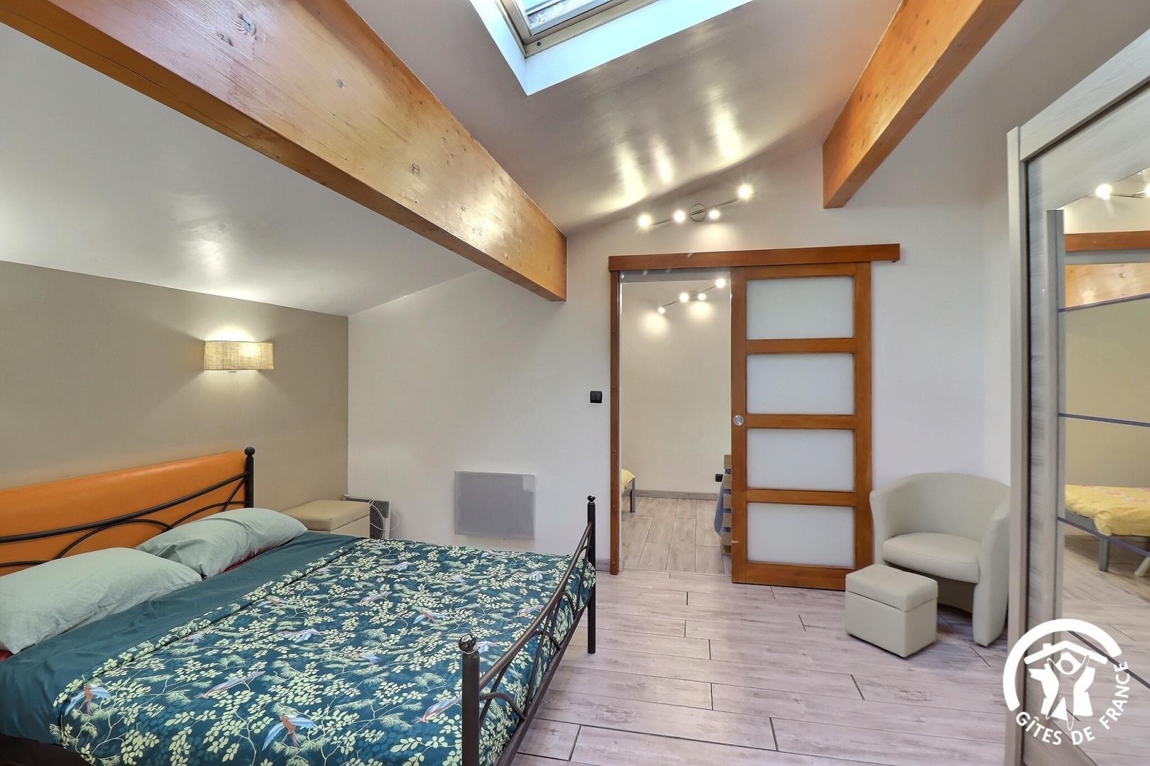 - Chambre avec lit 160x200cm, lit d'appoint 90x190cm, penderie.